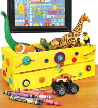Para personalizar las cajas de frutas, incorpora cintas, retales de tela, lanas o bolitas de fieltro para decorar algunas tablitas y formar por ejemplo, unas agarraderas más cómodas y coloridas. En este enlace encontrás más ideas para reciclar cajas de madera y decorar con encanto.