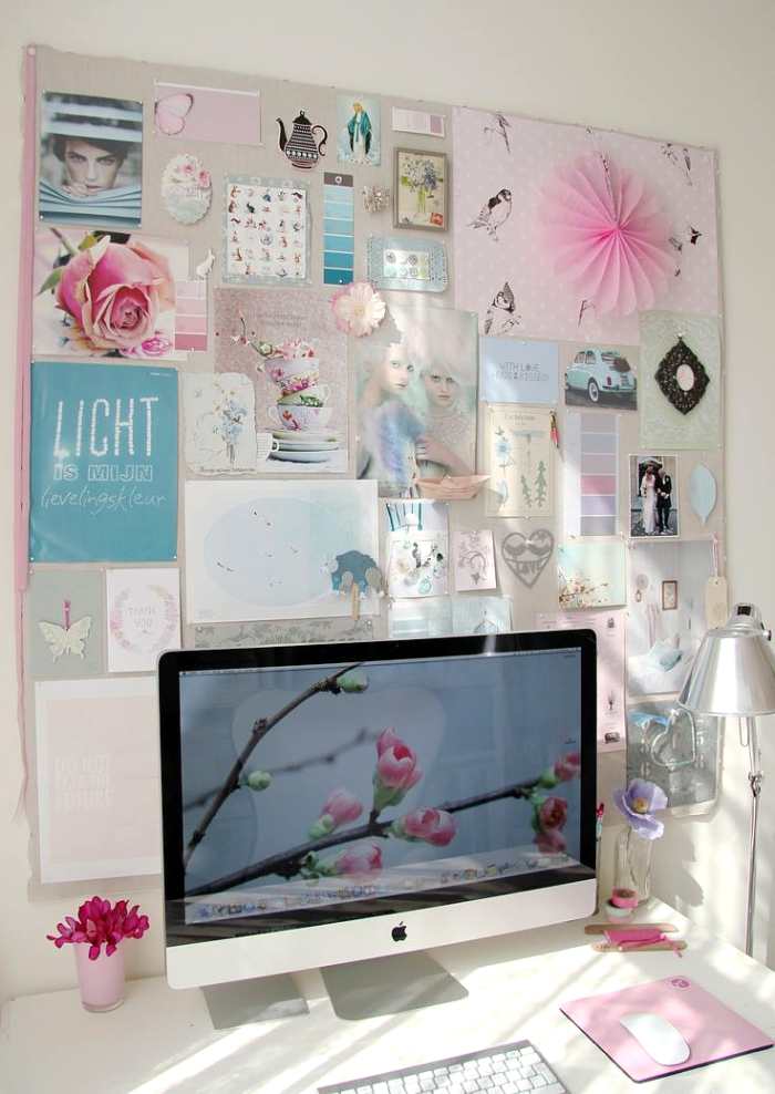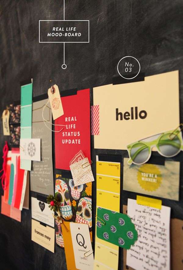 Luego de la recopilación de todos los elementos, la selección o filtrado posterior, (pues no podemos saturar este panel, solo debemos mostrar lo que nos gusta), el siguiente paso consiste en elegir el lugar donde exponer el moodboard o la forma en que se mostrarán los objetos. Puede ser colgándolos de una pared, sujetarlos a un corcho, un panel de tela, clavarlos o colgarlos de un hilo, en muebles etc.