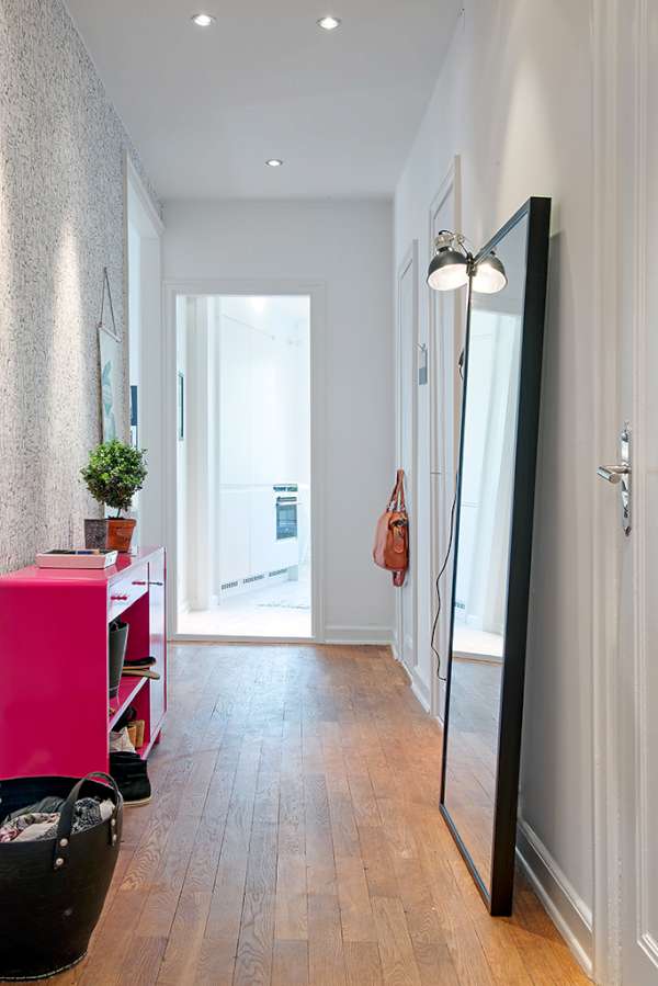 Me encanta cuando ponen color al estilo escandinavo! esa mesa amarilla me enamora, y la entrada no puede ser más ideal.