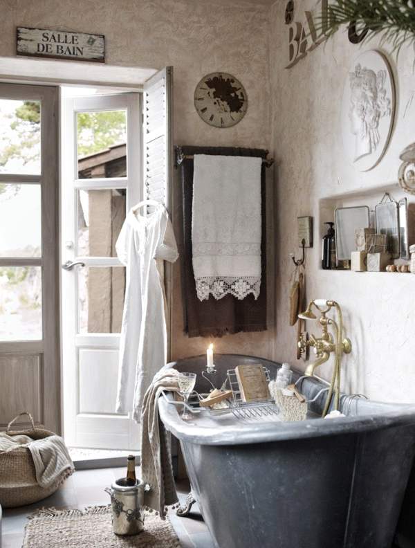 En cuanto al cuarto de baño, es otro de los espacios que invitan a disfrutar de un plácido baño con atractivas vistas, y apreciar cada detalle que lo decora. Conviven en perfecta armonía toallas con encajes, hornacinas que albergan espejos y bonitos jabones, objetos vintage que suman pinceladas auténticas, o la estética de los muebles reciclados que no ocultan es paso del tiempo en sus pinturas y en sus figuras con historia.