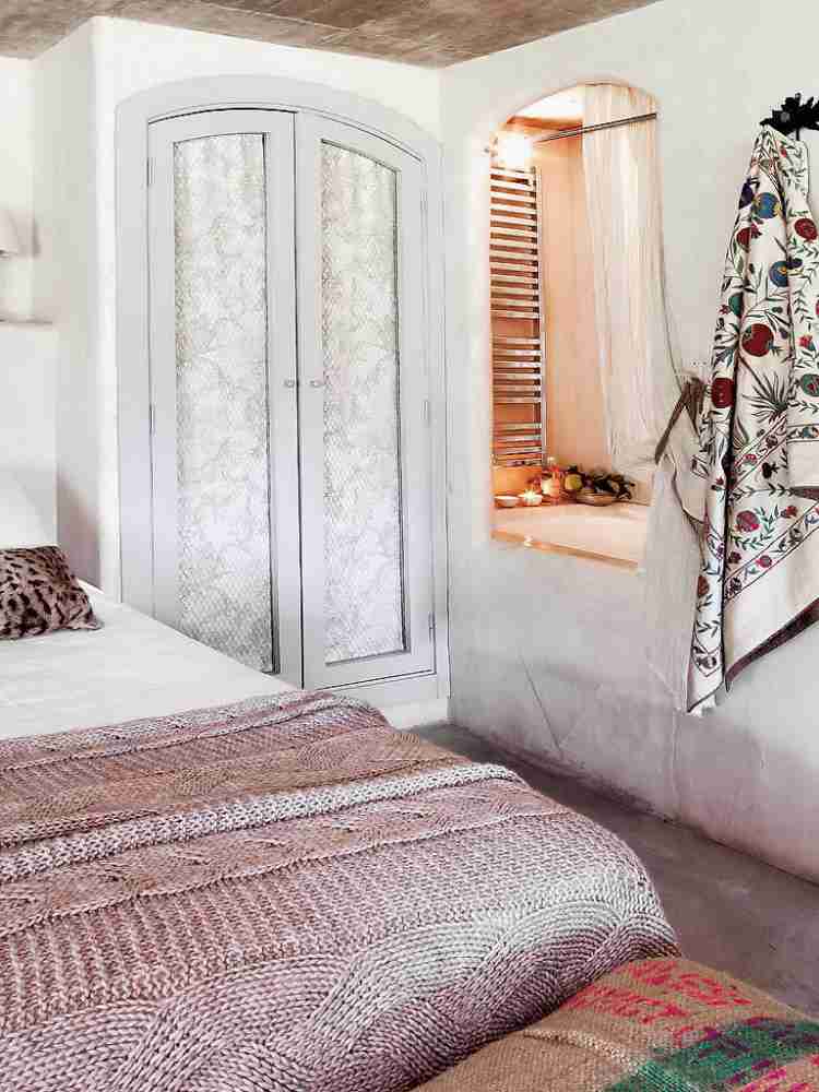 En la entrada una cortina viste la puerta, mientras que unas cajas antiguas con piñas y madera en su interior, enriquecen esta zona. El toque campestre está presente en cada habitación y se acompaña por notas personales que definen el carácter de la decoración.