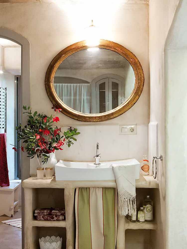 Cada habitación de esta casa de campo completa su decoración fusionando muebles de estilo con piezas sencillas, suaves tejidos, notas de color más la belleza de los complementos. Entre éstos se cuentan espejos que añaden un guiño vintage, ménsulas antiguas, o los recipientes de cristal o loza que ofrecen una presencia práctica y decorativa.