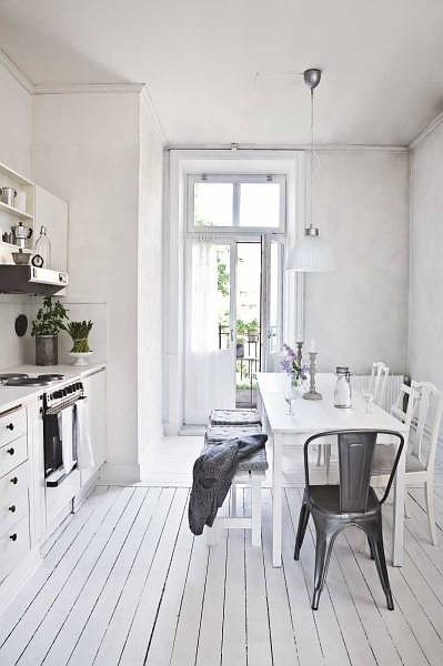 Desde un balcón pequeño se cuela la luz natural y el frescor de unas hierbas cultivadas en jardineras y macetas, el suelo de madera en tonos blanco o natural según la estancia, suma una apropiada calidez que matiza la frialdad de tanto blanco. Así es como paso a paso y sin agobiar, esta casa está repleta de hallazgos que ofrecen una impronta sugerente en unos ambientes confortables.