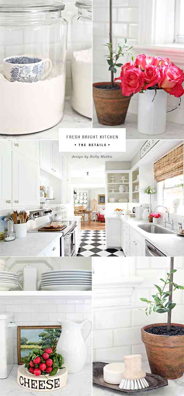 Una pequeña maceta con hierbas aromáticas, o una antigua taza de porcelana, platos heredados, una cesta con frutas frescas, o una copa con flores recién cortadas, pueden ser esos delicados detalles que hagan la diferencia y transformen tu cocina con una estética única y acogedora.