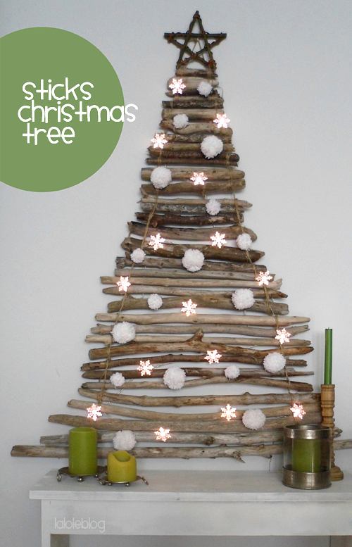 Si prefieres una atmósfera navideña en la que destaque la austeridad y la sencillez, éste es el modelo de arbolito que más te va a gustar: formando la figura con palos, troncos o ramitas, que dispuestas como una pirámide serán el punto de partida para comenzar a decorar con estrellas, bolas, y luces un rincón de tu hogar.
