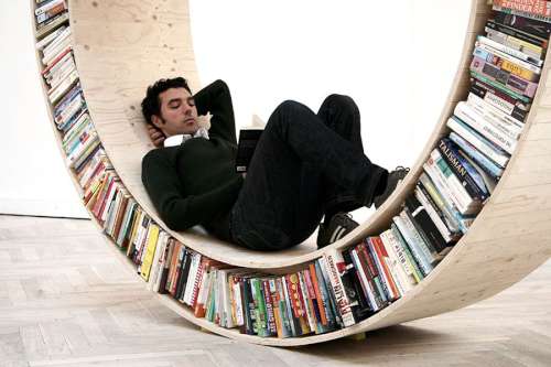 No soy la típica librería de toda la vida. Éste es el lema de esta curiosa librería con forma circular y creada por el artista David García, que pide a gritos que te sientes, te tumbes o andes por ella. Y sí, has oído bien, puedes andar por ella. Al ser una estructura circular facilita el movimiento. Eso sí, mejor darte un paseo por tu casa que sacarla a pasear por la calle como si fueses un perro, más que nada porque pesa nada más y nada menos que 120 kilos.