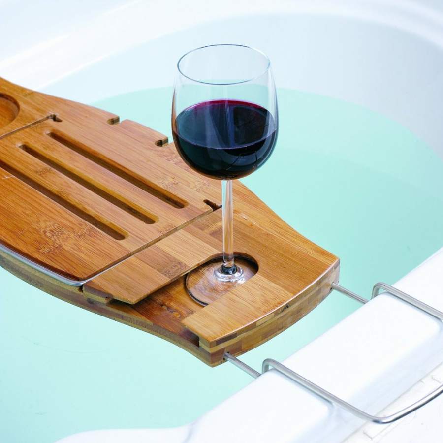 Darse un baño relajante con música de fondo, velas encendidas, una copa de vino y un libro en la mano es una imagen tan apetecible como poco práctica. En una bañera de diseño no hay espacio real para dejar tantas cosas, por lo que un baño relajante puede acabar siendo todo menos eso. Por ello, regálale a tu pareja esta mesita multifuncional en la que poder dejar su copa de vino o libro y haz que sus baños sean relajantes de una vez por todas.