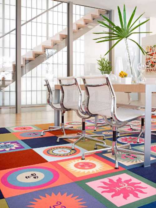 Alfombras de Diseño: Este tipo de alfombras son especiales para brindar el toque distintivo a un espacio, como ocurre con cualquier objeto de diseño. Suelen tener patrones y colores que se convierten en el foco de atención y acento de una decoración. Para no errar en su elección, es conveniente no sobrecargar el ambiente si elegimos una alfombra con grandes estampados, y para los muebles que se apoyen sobre ellas, mejor si se eligen de diseño ligero, que permitan apreciarlas.