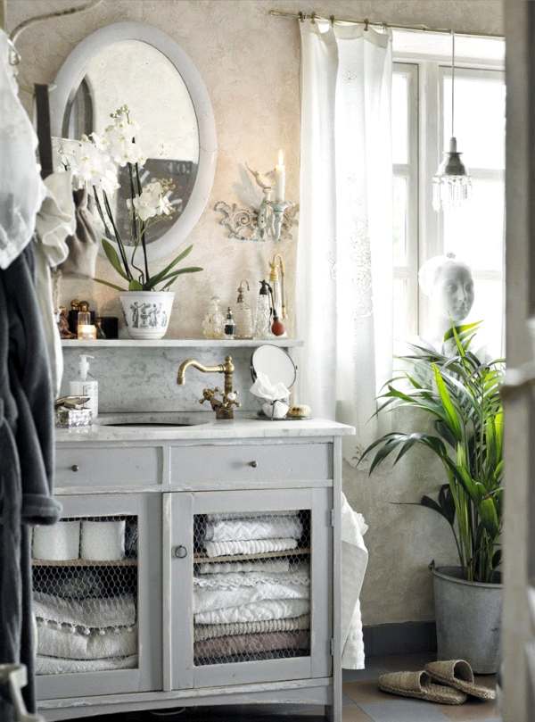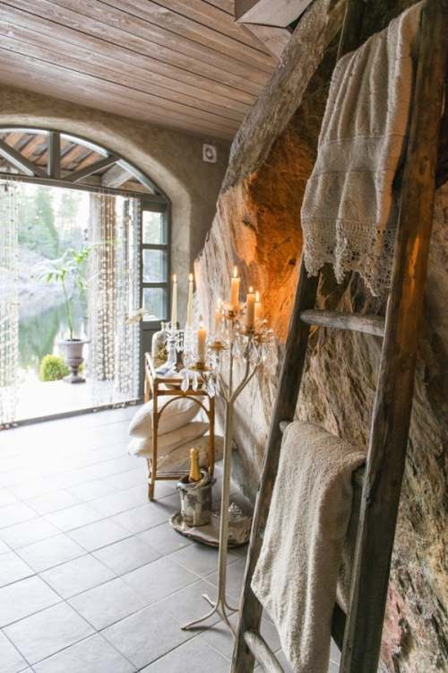 En cuanto al cuarto de baño, es otro de los espacios que invitan a disfrutar de un plácido baño con atractivas vistas, y apreciar cada detalle que lo decora. Conviven en perfecta armonía toallas con encajes, hornacinas que albergan espejos y bonitos jabones, objetos vintage que suman pinceladas auténticas, o la estética de los muebles reciclados que no ocultan es paso del tiempo en sus pinturas y en sus figuras con historia.