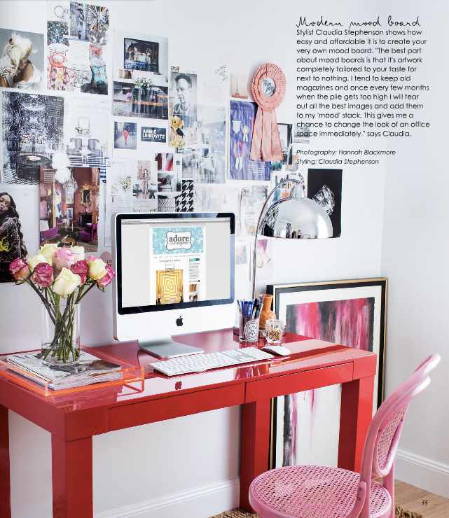 En un espacio de trabajo, un pequeño despacho en casa, un ambiente dedicado a la costura o a labores de punto, se inunda de materiales y el colorido que completan el atractivo de la estancia. Paneles de notas, retales colgados simpáticamente de cuerdas, decoran las paredes, mientras hilos de colores o lanas expuestos en estanterías, colgadores u otros soportes improvisados, también añaden texturas, color y dinámica a la atmósfera, acompañando por el guiño funcional que poseen.