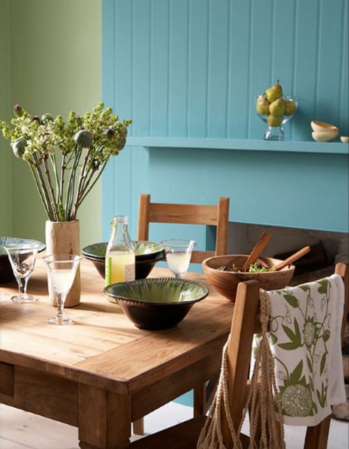 Va muy bien con colores como azul, amarillo, también con los marrones y los beiges, sobre todo si se trata de la gama de verde medios. Este conjunto cromático nuevamente es muy representativo de los colores de la naturaleza, y concentrados en la decoración de un interior puede crear un clima entre acogedor y simple.