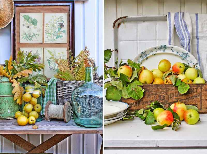 Entre los objetos decorativos que podemos incorporar a estas renovadas composiciones aparecen botellas y damajuanas de vidrio, cestas de mimbre y otros tejidos vegetales, cajas de madera de inspiración vintage, baúles, faroles, arcones y accesorios de latón con aire industrial.