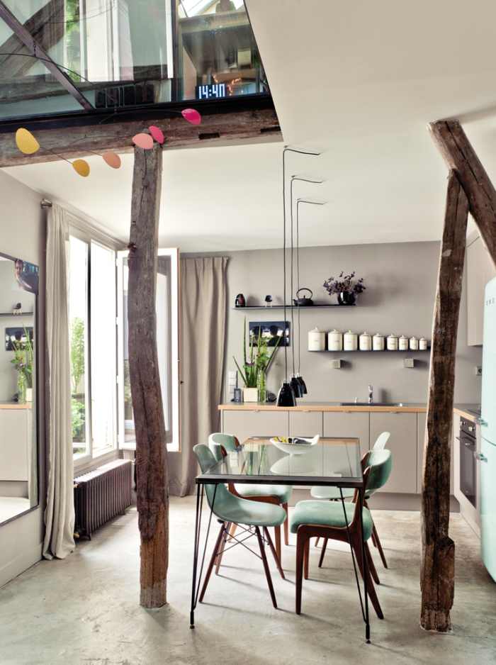 El broche de oro aparece en el techo, pues en el piso superior un sector del solado está acristalado, esto permite el contacto visual entre los dos niveles de la casa. Es un guiño original de la arquitectura, y seguro un punto de interés y diversión para quienes habitan esta vivienda.