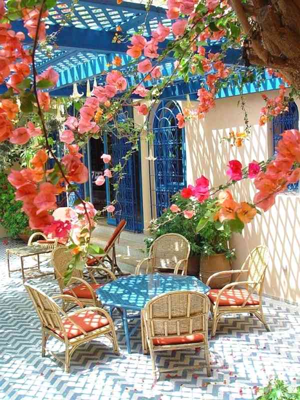 Los tejidos naturales como ratán o mimbre se convierten en otra de las alternativas decorativas con una alta dosis de calidez. Cuando están presentes en los muebles de un patio o terraza, permiten crear conjuntos acogedores, ideales para recibir textiles que los arropen y le aportan una cuota de colorido, por ejemplo con unos confortables cojines en los asientos de las sillas.