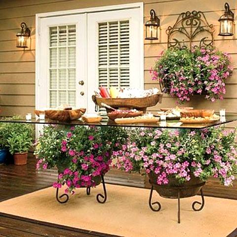 Incluso para dinamizar un juego de muebles de jardín de madera podemos combinarlos con piezas en otros materiales, como puede ser sillas de metal. Así como fusionar la calidez de la madera natural con vibrantes colores de muebles de plástico, otra opción para decorar estos espacios, mas asequible y también versátil.